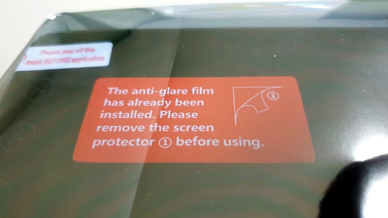 이미 안티 글레어 필름이 장착되어 있습니다. 사용 시에는 보호 필름을 벗겨 주세요. ...라고 하지만,